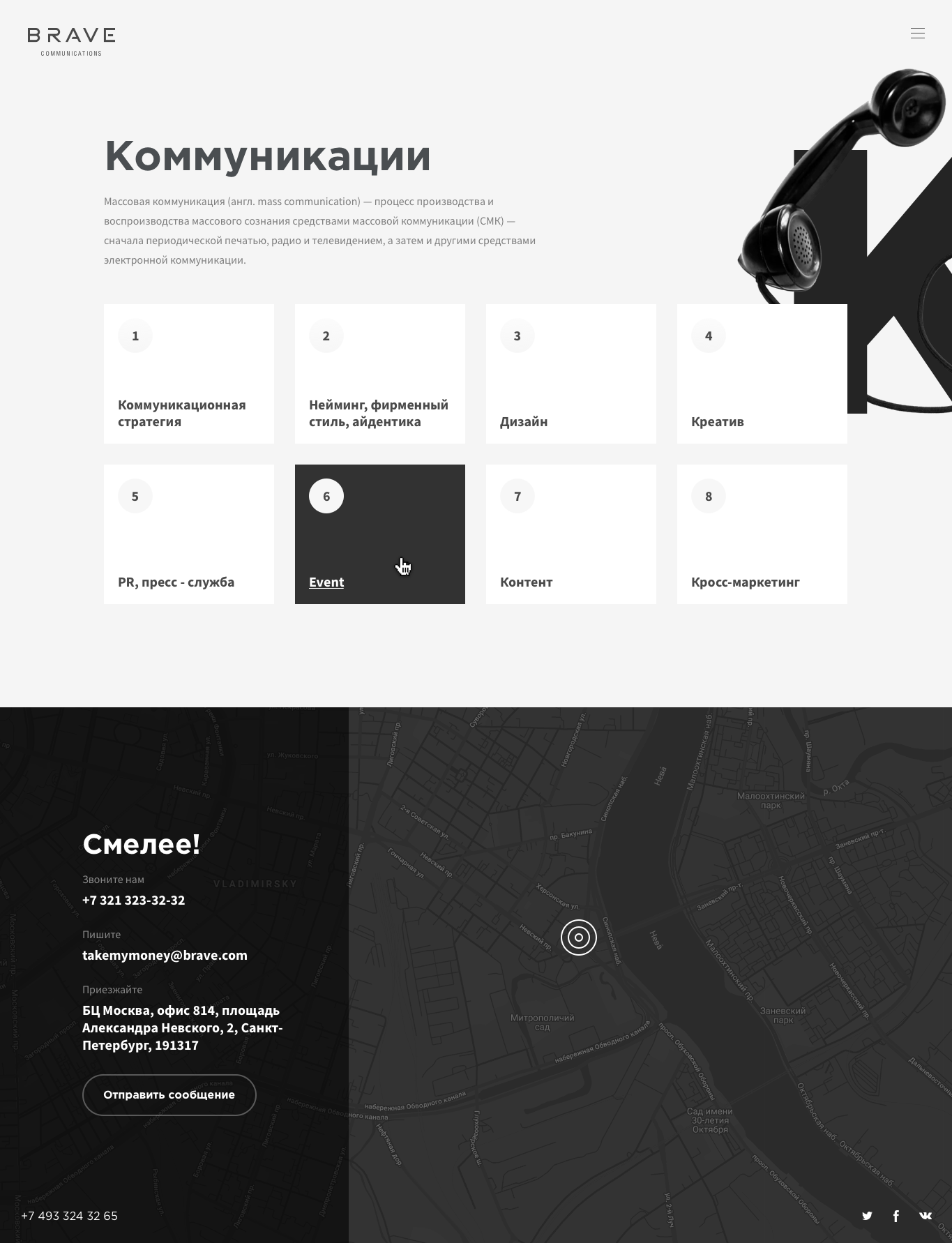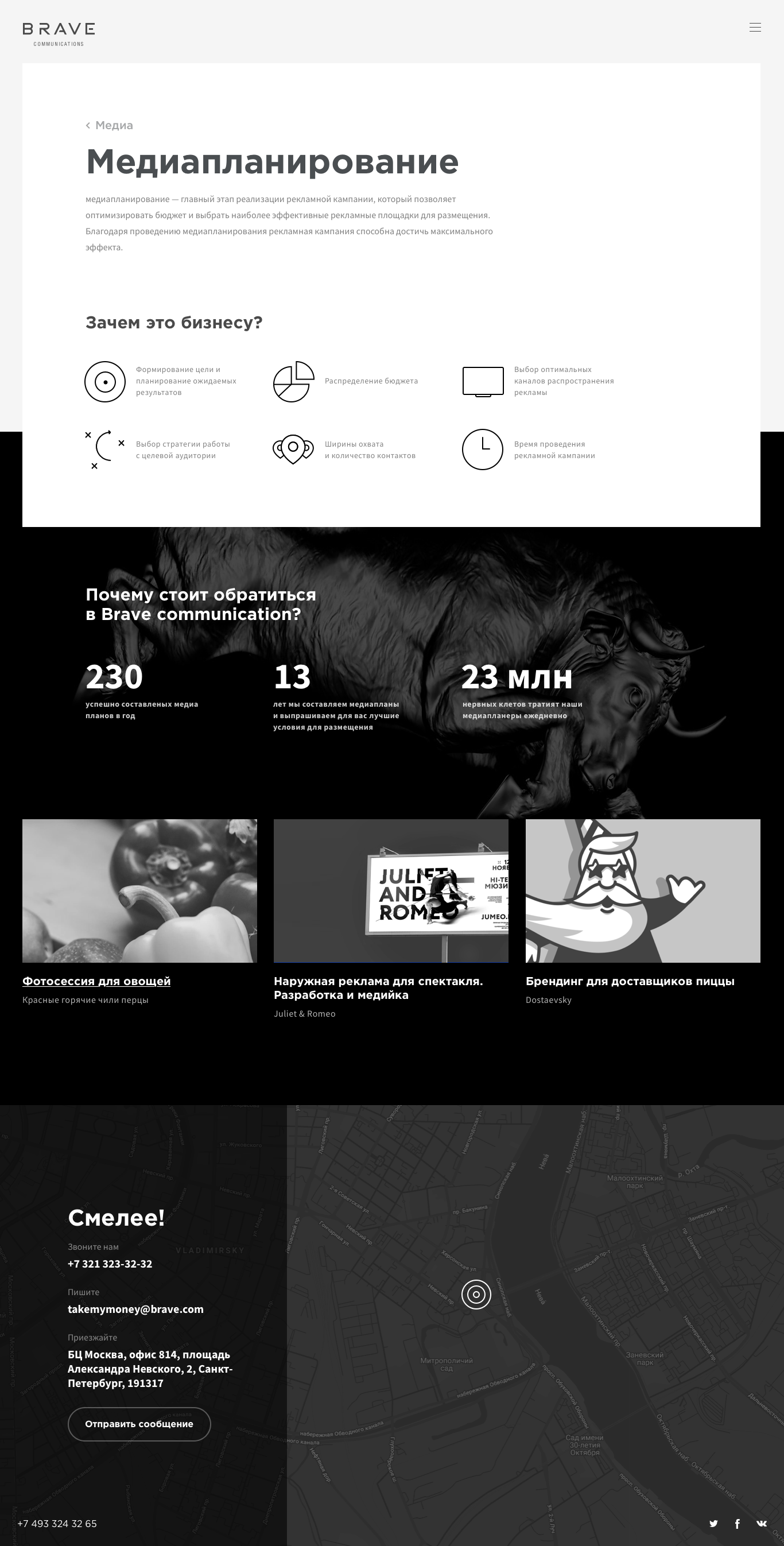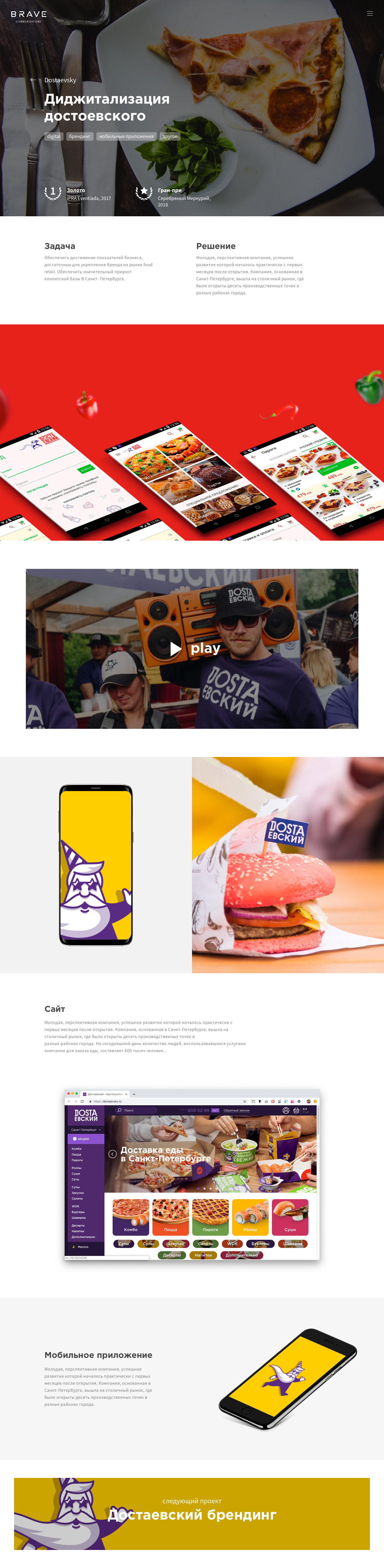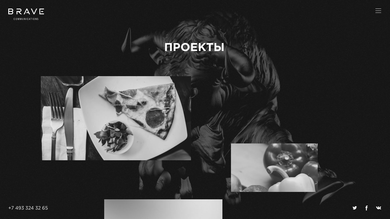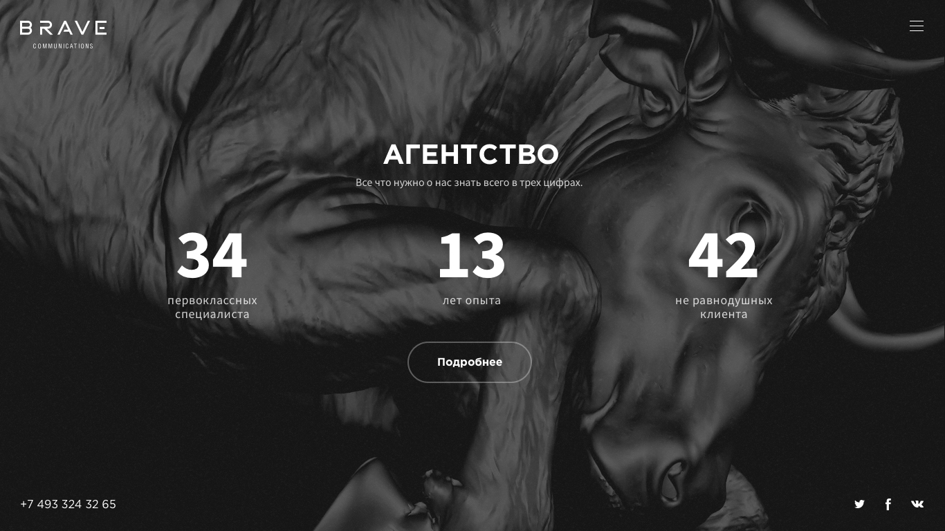 The bull was chosen as a fearless animal running towards its goal. Brand identity was made in black and white, and the colors were used only in the portfolio section. The most difficult task was to create the movement of the camera around the bull to avoid its loin in the frame.